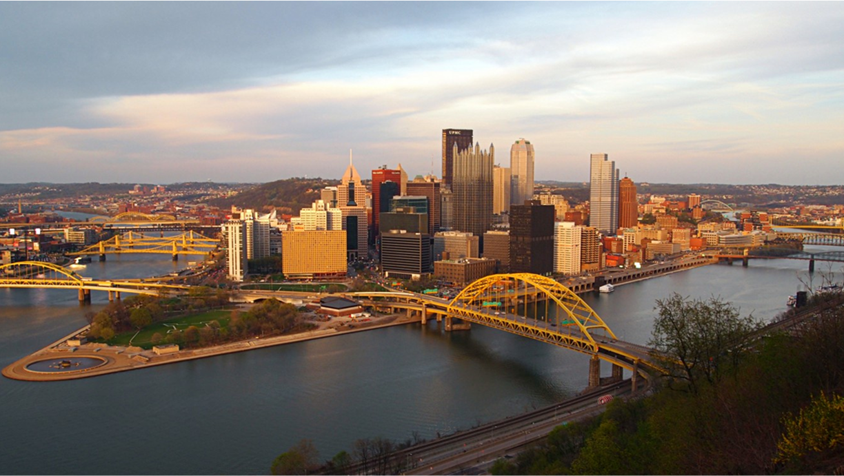 View of downtown Pittsburgh overlooking this iconic bridge. Image Credit (2024).